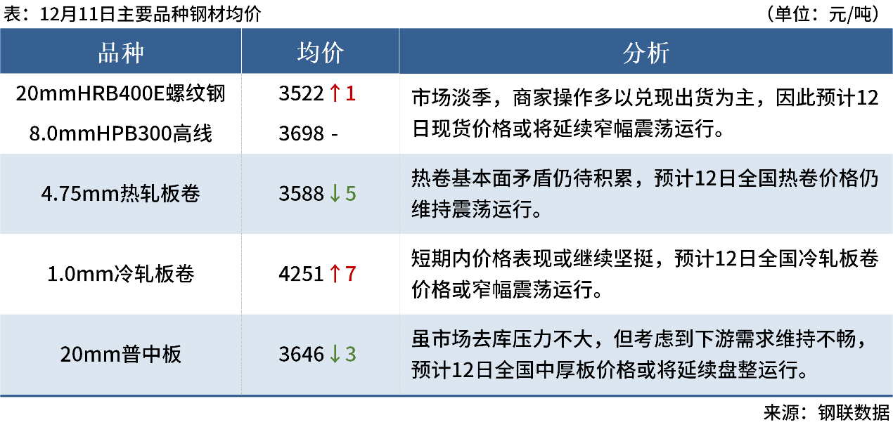 ◎12月11日,沙鋼出臺12月中旬出廠價,螺紋鋼價格持平,現(xiàn)螺紋鋼3700。