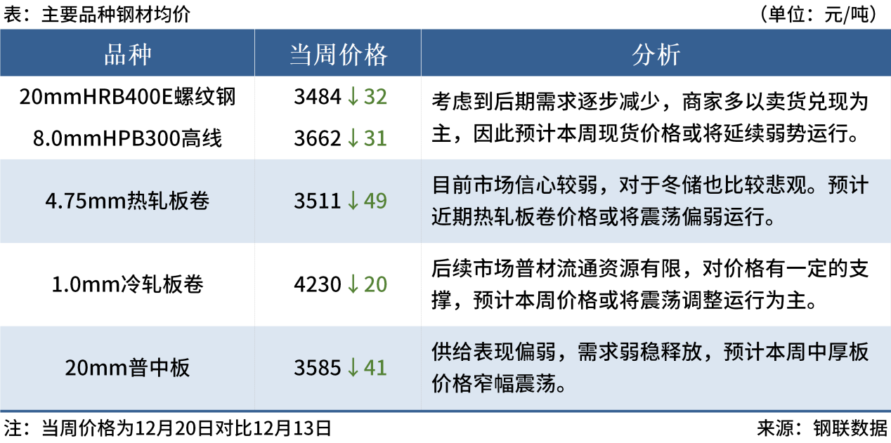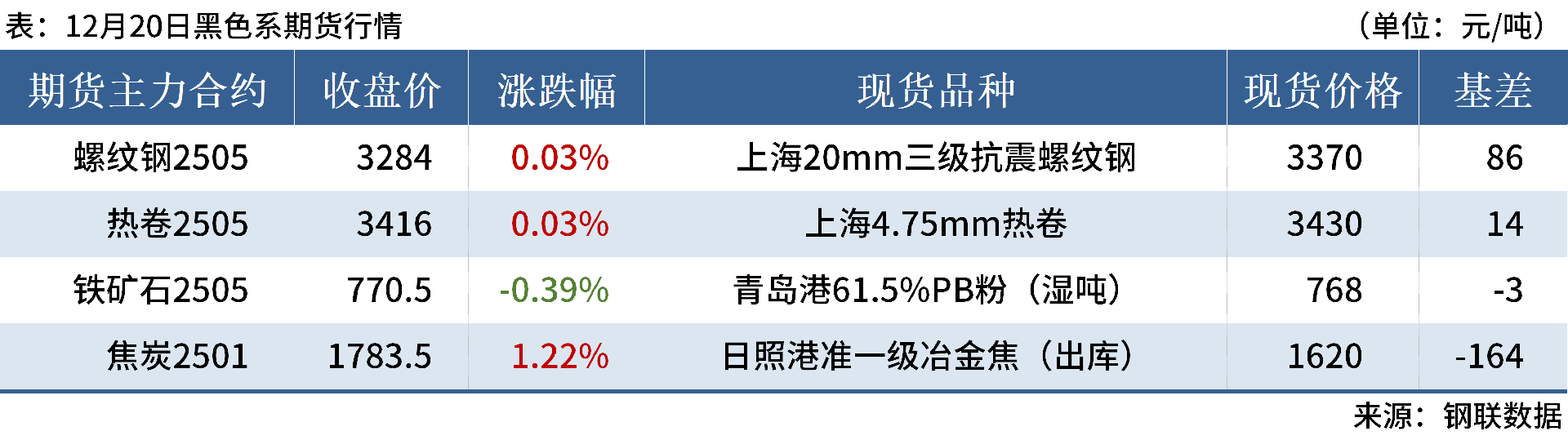 ◎ 12月20日中天鋼鐵出臺12月下旬出廠價,螺紋鋼、線材、盤螺下調80元/噸,華東螺紋3500元/噸、線材盤螺3720元/噸。