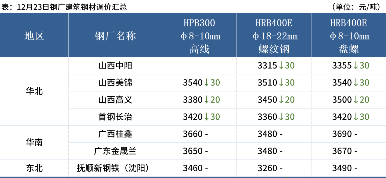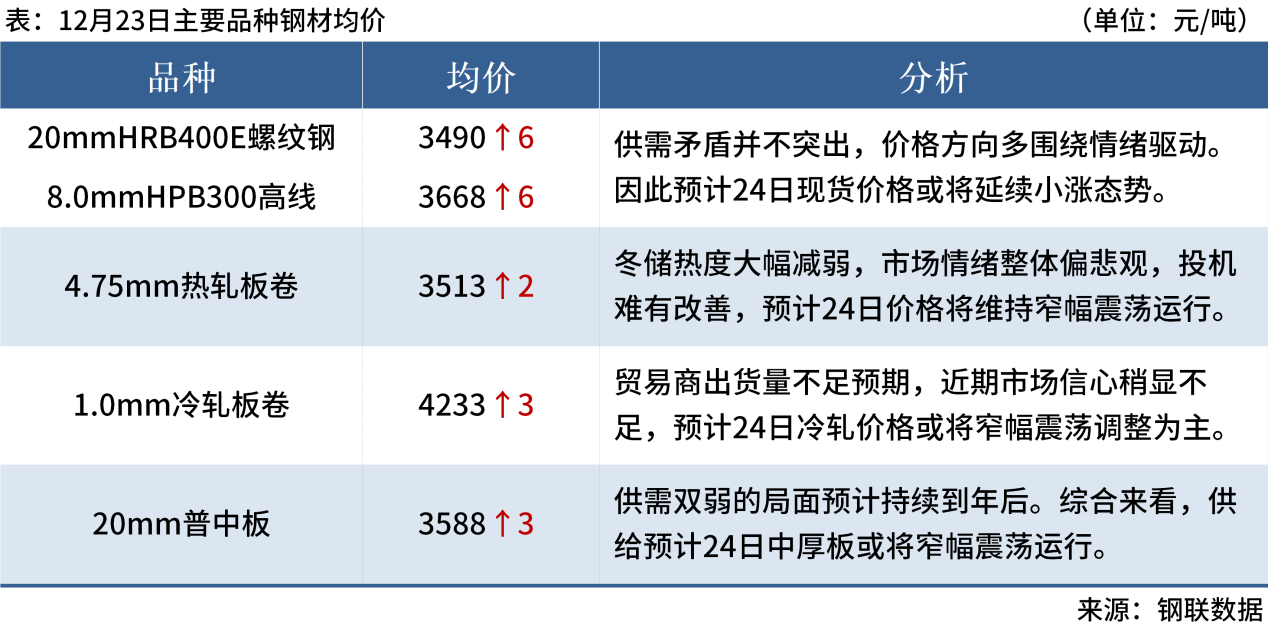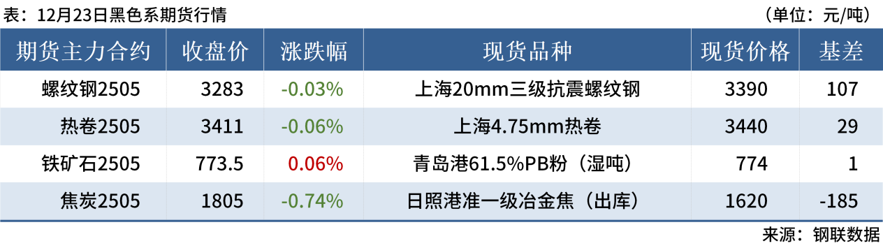◎ 12月23日,全國主港鐵礦石成交93.33萬噸,環(huán)比減20.2%;237家主流貿(mào)易商建筑鋼材成交12.43萬噸,環(huán)比增16.9%。