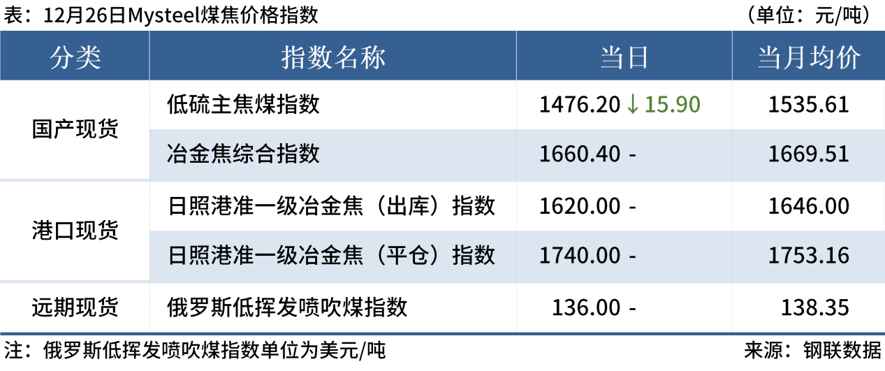 ◎ 12月25日,新口徑114家鋼廠進(jìn)口燒結(jié)粉總庫存2936.54萬噸,環(huán)比上期增48.64萬噸。鋼廠不含稅平均鐵水成本2526元/噸,環(huán)比上期減1元/噸。