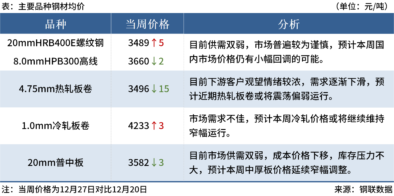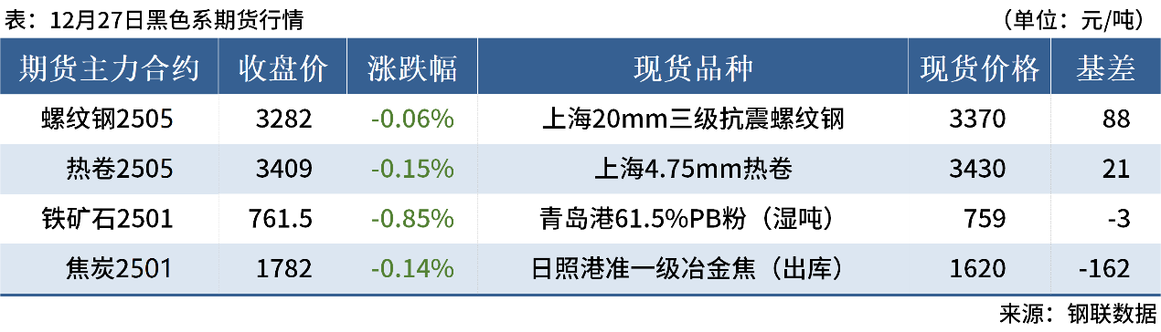 ◎12月27日,全國主港鐵礦石成交112.00萬噸,環(huán)比減0.4%;237家主流貿(mào)易商建筑鋼材成交9.75萬噸,環(huán)比減8.4%。