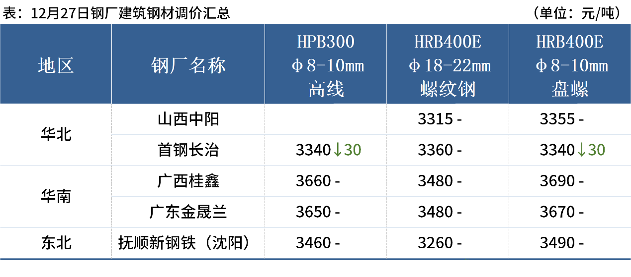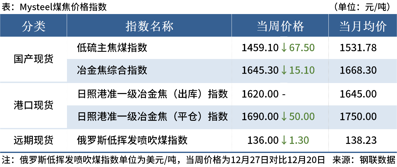 ◎12月27日,河北、山東市場鋼廠對焦炭采購價下調(diào),濕熄降幅50元/噸,干熄降幅55元/噸。